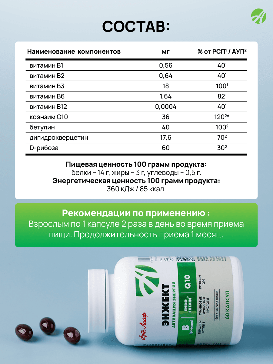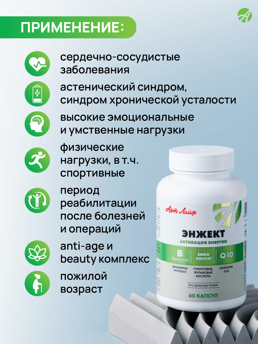 Чувствуете упадок сил и хроническую усталость? Энжект поможет восстановить энергетический потенциал без вреда для организма. Забудьте о вялости — верните бодрость и активность! Ключевые характеристики: • содержит коэнзим Q10 и липосомированный комплекс витаминов B; • способствует восстановлению АТФ и улучшению энергообмена; • поддерживает работу сердца и нервной системы; • действует накопительно — эффект сохраняется надолго; • не вызывает привыкания и «синдрома отмены»; • подходит при высоких физических и умственных нагрузках; • курс на 1 месяц (60 капсул в упаковке). Почему выбирают именно нас? • Научно обоснованная формула: синергия коэнзима Q10 и витаминов B усиливает эффект. • Безопасность: нет стимуляторов, истощающих резервы организма. • Комплексное действие: поддержка энергии, сердца, мозга и иммунитета. • Удобная схема приёма: 1 капсула 2 раза в день во время еды. • Натуральные компоненты: D рибоза, бетулин, дигидрокверцетин и др. Наш товар vs обычные аналоги • Состав: мы объединили коэнзим Q10, витамины B и дополнительные активные компоненты, тогда как аналоги часто содержат лишь 1–2 ингредиента. • Механизм действия: наш комплекс работает накопительно и длительно, а стимуляторы дают кратковременный эффект с последующим упадком сил. • Безопасность: отсутствие привыкания и «синдрома отмены» — в отличие от многих энергетических добавок. Часто задаваемые вопросы • С какого возраста можно принимать? С 14 лет. Перед приёмом проконсультируйтесь с врачом. • Как долго длится курс? Рекомендуемый курс — 1 месяц, при необходимости можно повторить. • Есть ли побочные эффекты? При соблюдении дозировки и отсутствии непереносимости побочные эффекты маловероятны. Не откладывайте заботу о энергии и здоровье! Закажите Энжект прямо сейчас — осталось всего несколько упаковок. Подарите себе бодрость и силу уже сегодня! Узнайте больше о продукте и его преимуществах на сайте производителя!