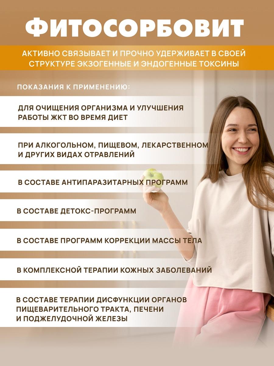 Чувствуете тяжесть и дискомфорт? Хотите мягко и безопасно вывести токсины из организма? «Фитосорбовит» — ваш надёжный помощник в поддержании здоровья ЖКТ и общего тонуса. Ключевые характеристики: • основа — низкоэтерифицированный цитрусовый пектин с высокой сорбционной способностью; • содержит микрокристаллическую целлюлозу, комплекс молочнокислых бактерий, экстракт свёклы, плоды шиповника, цветки пижмы; • клинически доказанная эффективность; • поддерживает работу кишечника и печени; • способствует коррекции дисбактериоза; • помогает снижать уровень холестерина. Почему выбирают именно нас? • Натуральный состав: только растительные компоненты без синтетических добавок. • Комплексное действие: не просто сорбирует токсины, но и поддерживает функции ЖКТ. • Научная обоснованность: эффективность подтверждена клиническими исследованиями. • Широкая сфера применения: подходит для профилактики и вспомогательной терапии. • Безопасность: мягко воздействует на организм, не вызывая раздражения. Сравнение с аналогами Наш товар Натуральный растительный состав Комплексное воздействие на ЖКТ Клинически доказанная эффективность Обычные аналоги Часто содержат синтетические компоненты Узконаправленное действие (только сорбция) Отсутствие клинических исследований Часто задаваемые вопросы • Безопасен ли «Фитосорбовит» для длительного приёма? Да, благодаря натуральному составу и мягкому действию препарат подходит для курсового применения (по рекомендации врача). • Поможет ли при отравлении? Да, «Фитосорбовит» эффективен при интоксикации, в том числе при отравлении тяжёлыми металлами и радионуклидами. Не откладывайте заботу о здоровье! Закажите «Фитосорбовит» прямо сейчас — подарите своему организму естественное очищение и поддержку. Узнайте больше о продукте и его преимуществах на сайте производителя!