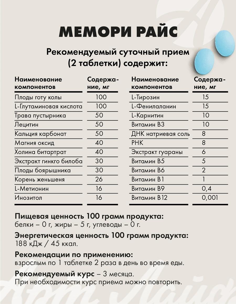 Забываете важные детали, теряете концентрацию? Мемори Райс поможет вернуть ясность ума и продуктивность — без привыкания и с клинически доказанным эффектом. Ключевые характеристики: • содержит лецитин, гинкго билоба, готу колу, женьшень; • улучшает кровообращение и оксигенацию мозга; • поддерживает память и концентрацию; • замедляет возрастные когнитивные изменения; • обогащён витаминами группы В и аминокислотами; • курс — всего 2–3 недели; • не вызывает привыкания. Почему выбирают именно нас? • Научно обоснованный состав: синергия растительных экстрактов и витаминов для максимальной эффективности. • Быстрый результат: первые улучшения — уже через несколько дней. • Безопасность: минимум противопоказаний, нет синдрома отмены. • Удобство: 1 таблетка 2 раза в день во время еды. • Доказанная эффективность: клинические исследования подтверждают действие. Наш товар vs обычные аналоги • Наш товар: комплексный состав, клинически проверен, 2 недели курса. • Обычные аналоги: однокомпонентные, долгий приём, нет подтверждённых исследований. Часто задаваемые вопросы: • Есть противопоказания? — Индивидуальная непереносимость, фенилкетонурия, беременность, лактация. Перед приёмом проконсультируйтесь с врачом. • Как долго принимать? — Курс 2–3 недели; при необходимости повторите после перерыва. Не ждите, пока забывчивость испортит планы! Закажите Мемори Райс сейчас — ограниченное количество по специальной цене. Ваш мозг заслуживает лучшей поддержки! Узнайте больше о продукте и его преимуществах на сайте производителя!