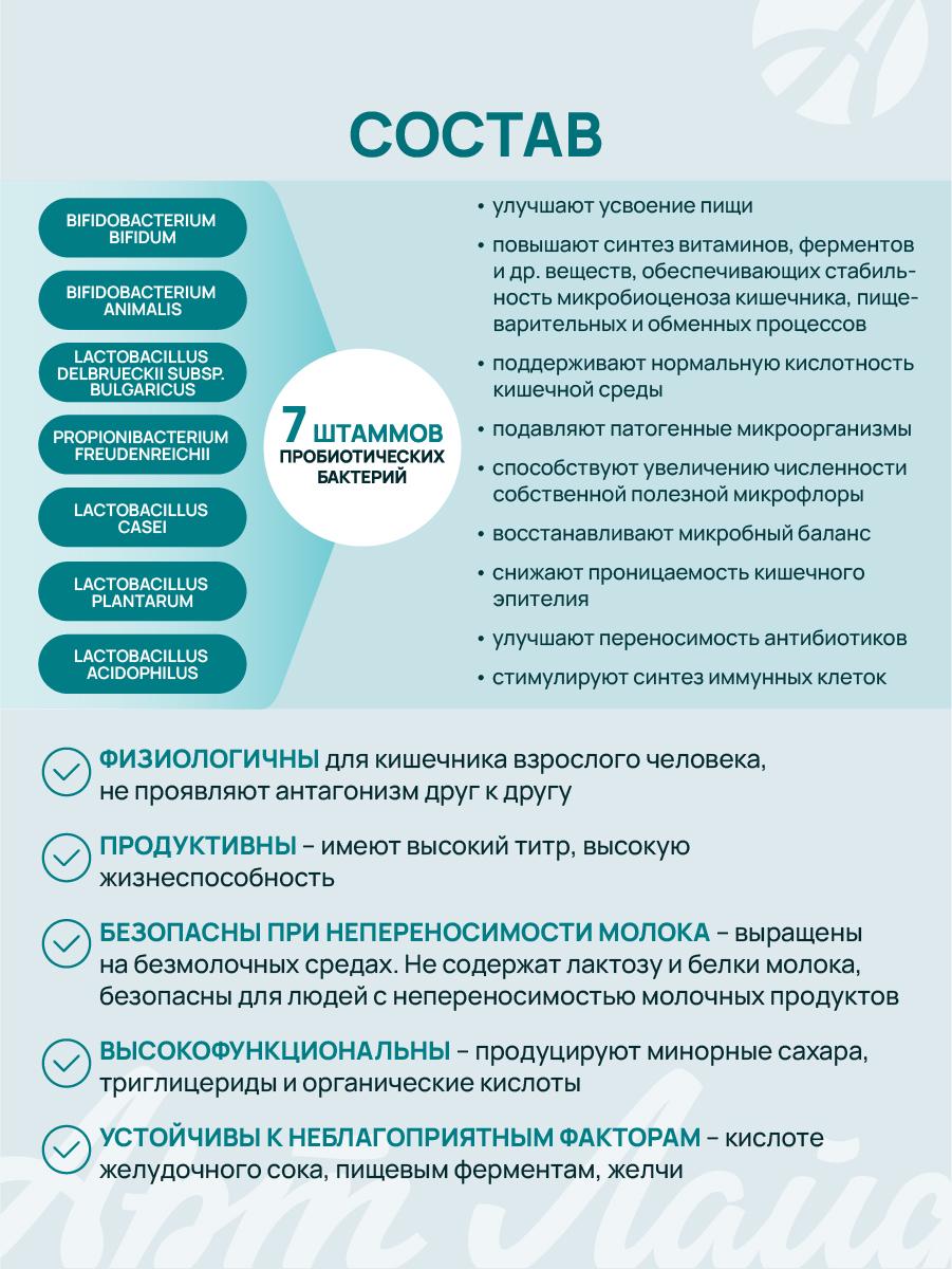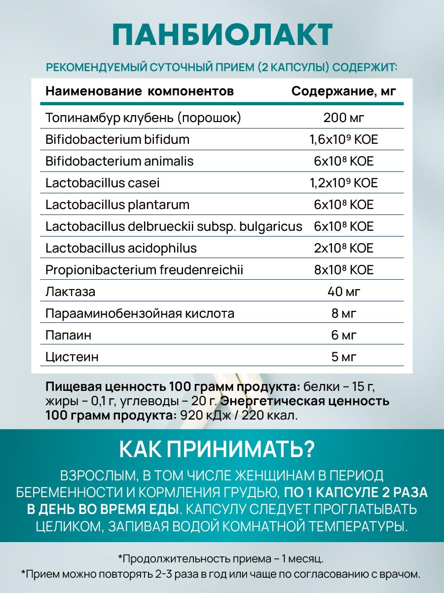 Устали от дискомфорта в животе и проблем с пищеварением? «Панбиолакт» поможет восстановить баланс кишечной микрофлоры и поддержать иммунитет кишечника безопасно и эффективно. Ключевые характеристики: 7 штаммов пробиотических бактерий (5,6 млрд КОЕ на 2 капсулы); содержит пребиотики (инулин из топинамбура), ферменты (папаин, лактаза) и цистеин; без лактозы и молочных белков — подходит при непереносимости молока; технология микрокапсулирования защищает бактерии от желудочного сока; восстанавливает нормофлору и микроэкологию кишечника; сокращает продолжительность терапии дисбиоза; подходит для профилактики при смене рациона или климата. Почему выбирают нас: Комплексный состав: пробиотики + пребиотики + ферменты + цистеин. Безопасность: нет лактозы и молочных белков. Эффективность: высокая концентрация КОЕ и хорошая колонизация кишечника. Научная основа: разработан с учётом современных биотехнологий. Удобство: небольшие капсулы легко принимать. Наш товар vs обычные аналоги: Мы: 7 штаммов бактерий + пребиотики + ферменты + цистеин. Аналоги: чаще только пробиотики или пребиотики. Мы: без лактозы и молочных белков. Аналоги: часто содержат молочные компоненты. Мы: микрокапсулирование защищает бактерии. Аналоги: бактерии могут разрушаться в желудке. FAQ: Как принимать? По 1 капсуле 2 раза в день во время еды. Курс — 30 дней (по рекомендации врача может быть скорректирован). Есть противопоказания? Индивидуальная непереносимость, беременность и кормление грудью. Перед приёмом проконсультируйтесь с врачом. Когда будет эффект? Первые улучшения — в течение курса (нормализуется стул, снижается вздутие). Не ждите усугубления проблем с пищеварением! Закажите «Панбиолакт» прямо сейчас — подарите своему кишечнику здоровье и баланс. Количество товара по специальной цене ограничено! Узнайте больше о продукте и его преимуществах на сайте производителя!