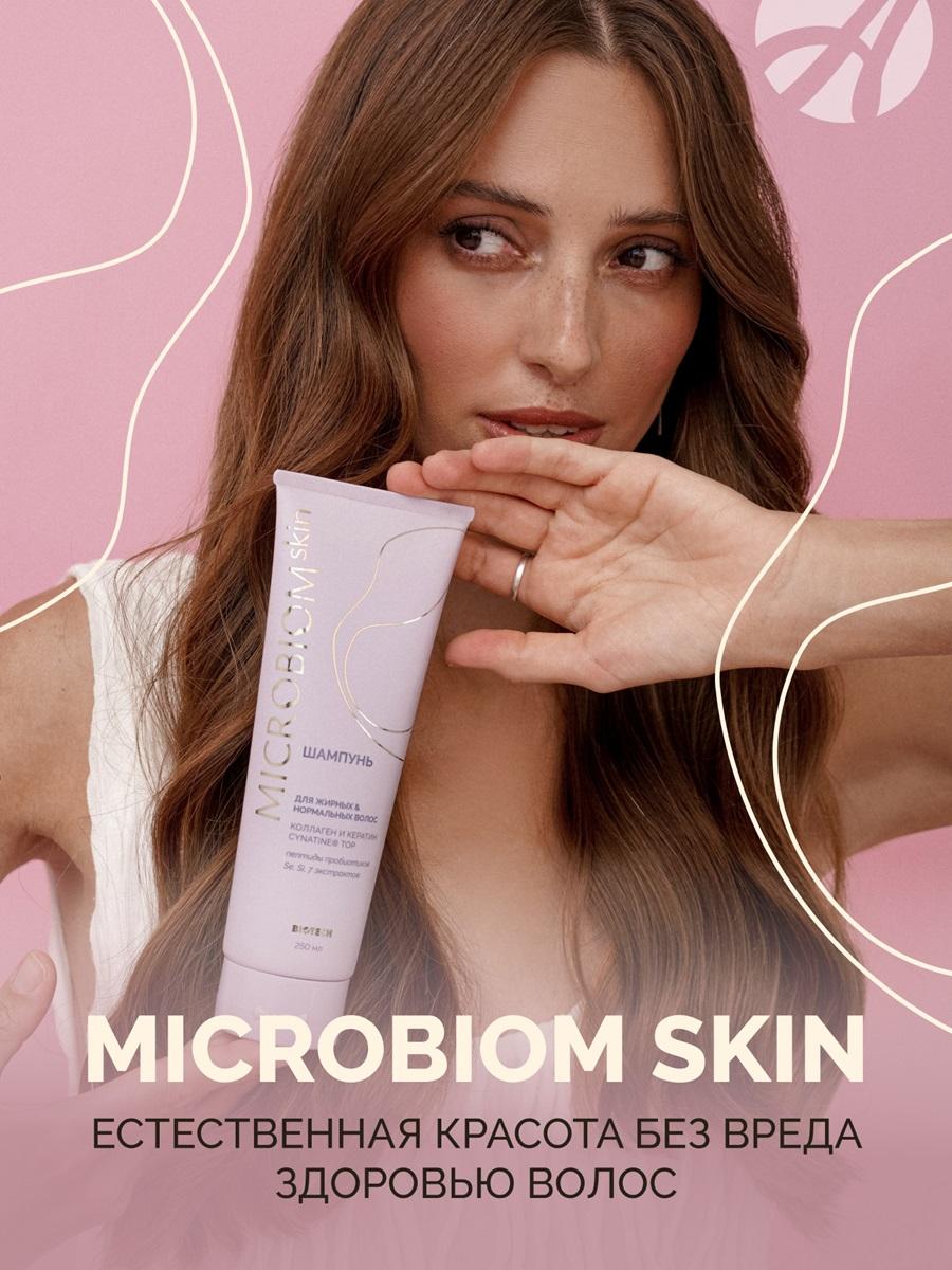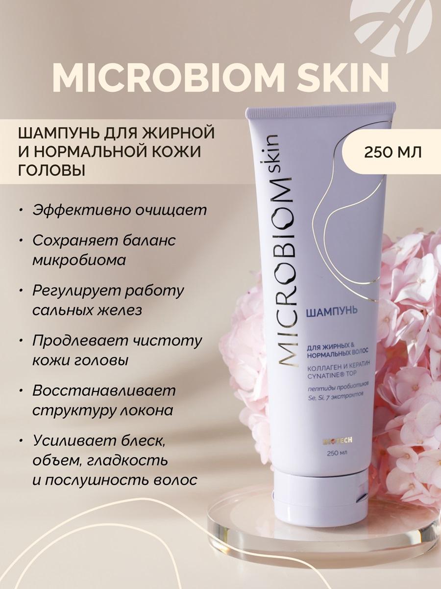 • Основные компоненты: пептиды пробиотиков, коллаген, кератин, никотинамид, растительные экстракты, кофеин Преимущества шампуня • Глубокое очищение без нарушения липидного баланса кожи головы • Восстановление структуры волос благодаря запатентованному кератину • Стимуляция роста за счет гидролизованного коллагена • Укрепление волос по всей длине благодаря 7 растительным экстрактам • Регуляция работы сальных желез • Защита микробиома кожи головы • Легкое расчесывание и укладка Почему наш шампунь лучше аналогов В отличие от обычных шампуней для жирных волос, МICROBIOM SKIN: • Содержит инновационный комплекс пептидов пробиотиков для поддержания здорового микробиома • Включает натуральные компоненты, которые не утяжеляют волосы • Работает на восстановление структуры изнутри • Обеспечивает длительный эффект свежести • Подходит для ежедневного применения без риска пересушивания Как использовать Нанесите небольшое количество шампуня на влажные волосы, помассируйте кожу головы 2-3 минуты, тщательно смойте теплой водой. При необходимости повторите процедуру. Подарите своим волосам профессиональный уход с шампунем МICROBIOM SKIN – и они ответят вам здоровым блеском и объемом! Узнайте больше о продукте и его преимуществах на сайте производителя!